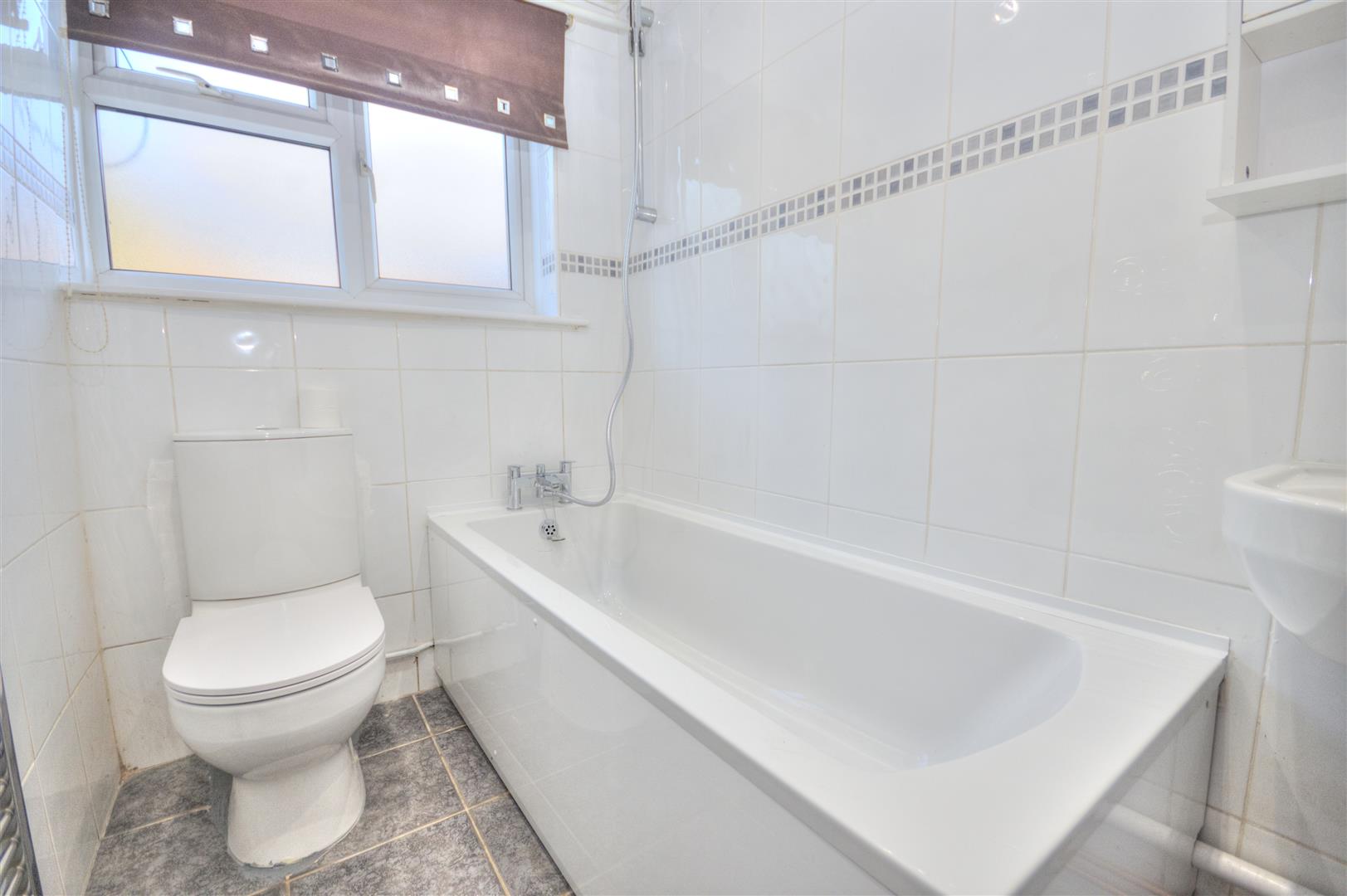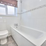 UPVC frosted double glazed window to rear elevation, WC, bath, wash hand basin, chrome towel rail, full tiled, panelling with downlights.