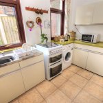 UPVC double glazed windows to side elevation, vinyl flooring, range of wall and base units, stainless steel sink with drainer, plumbing for white goods.