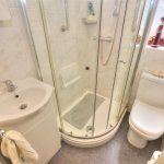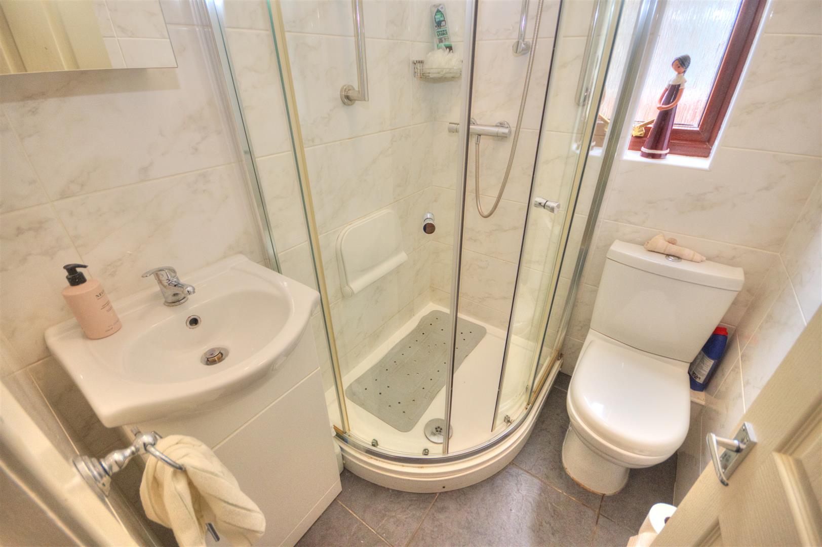 UPVC frosted double glazed window to side elevation, full tiled, wash hand basin, WC, walk in shower.