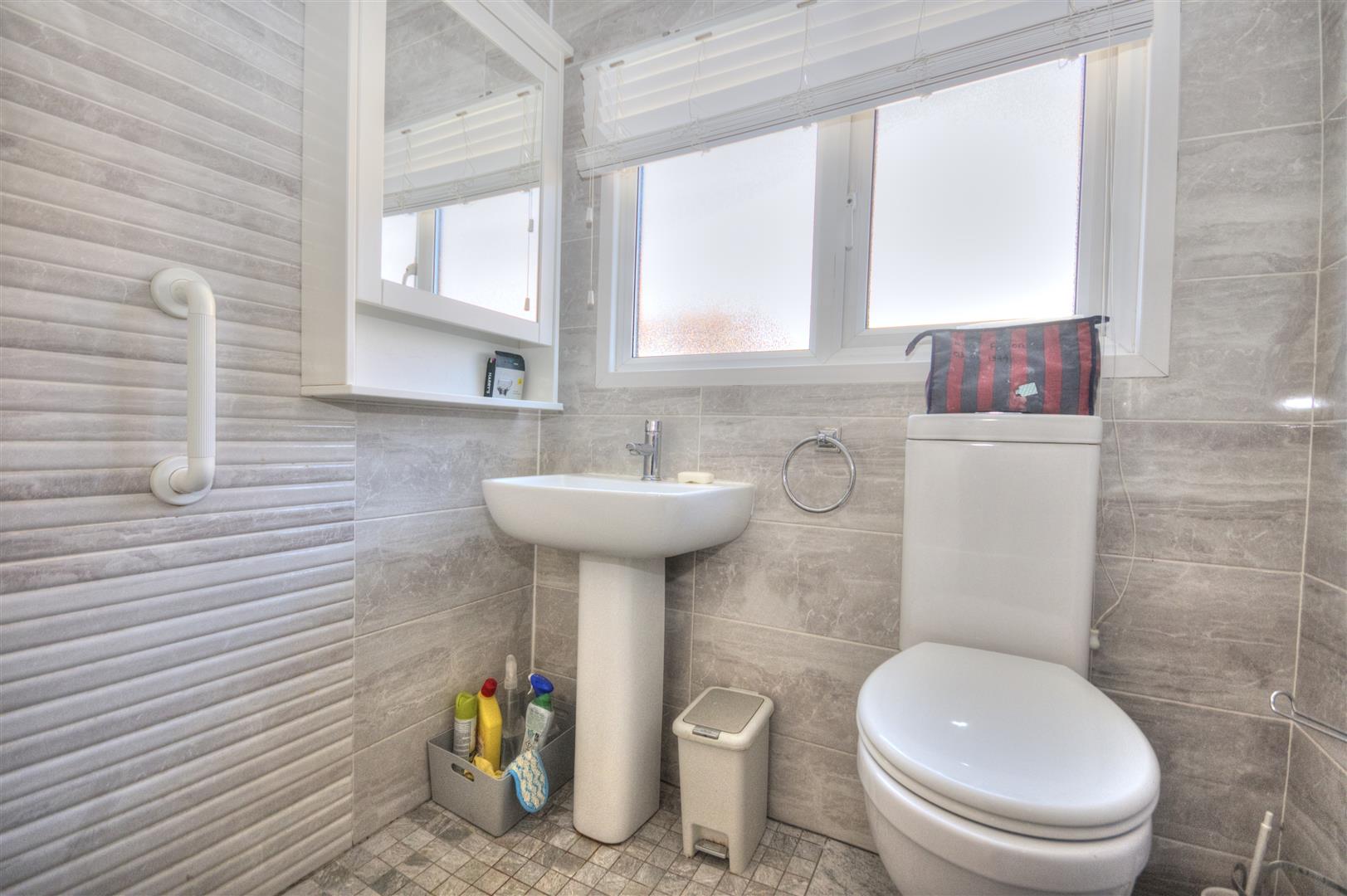 W.C. Tiled flooring, part tiled walls. UPVC frosted widow to side elevation.