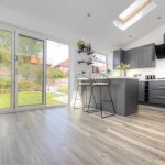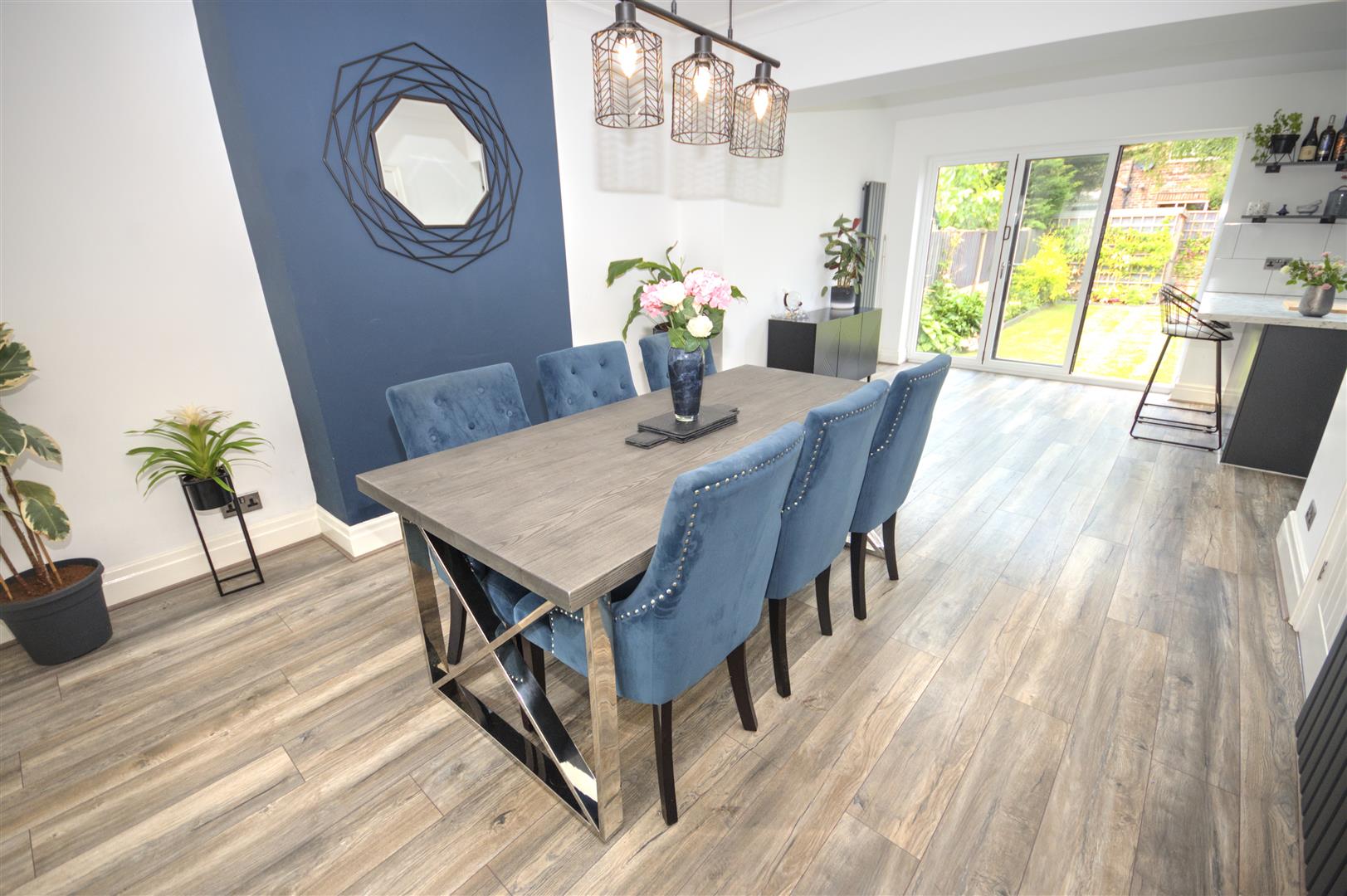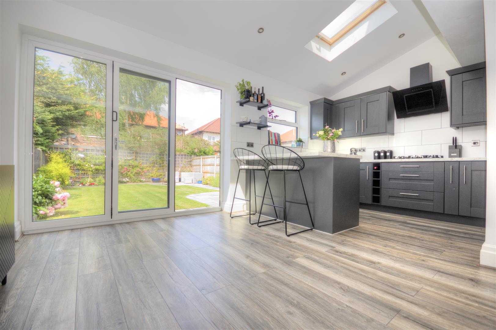 Bi fold Doors leading to rear garden. Laminate flooring continuing from lounge area - Velux window - UPVC double glazed unit to rear elevation Radiator.