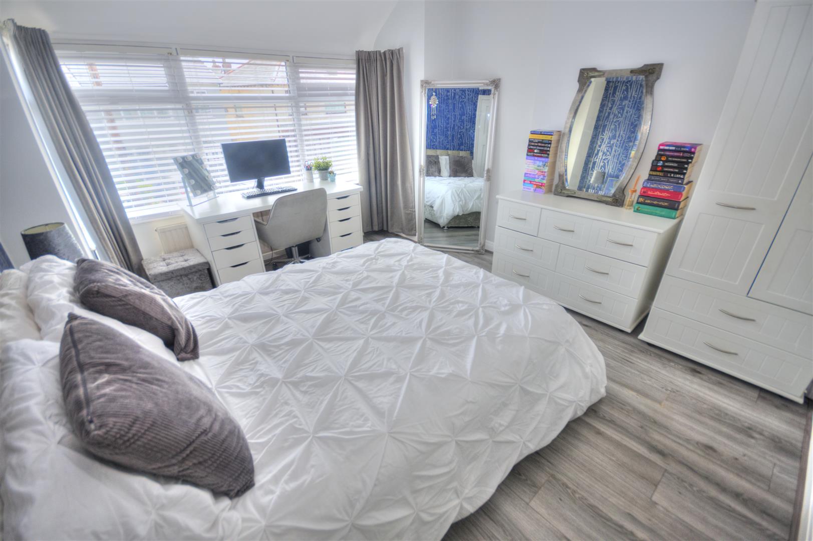 To rear of property. Laminate flooring - UPVC double glazed unit to rear elevation, vertical radiator, fitted wardrobes with mirrored sliding doors, down lights.