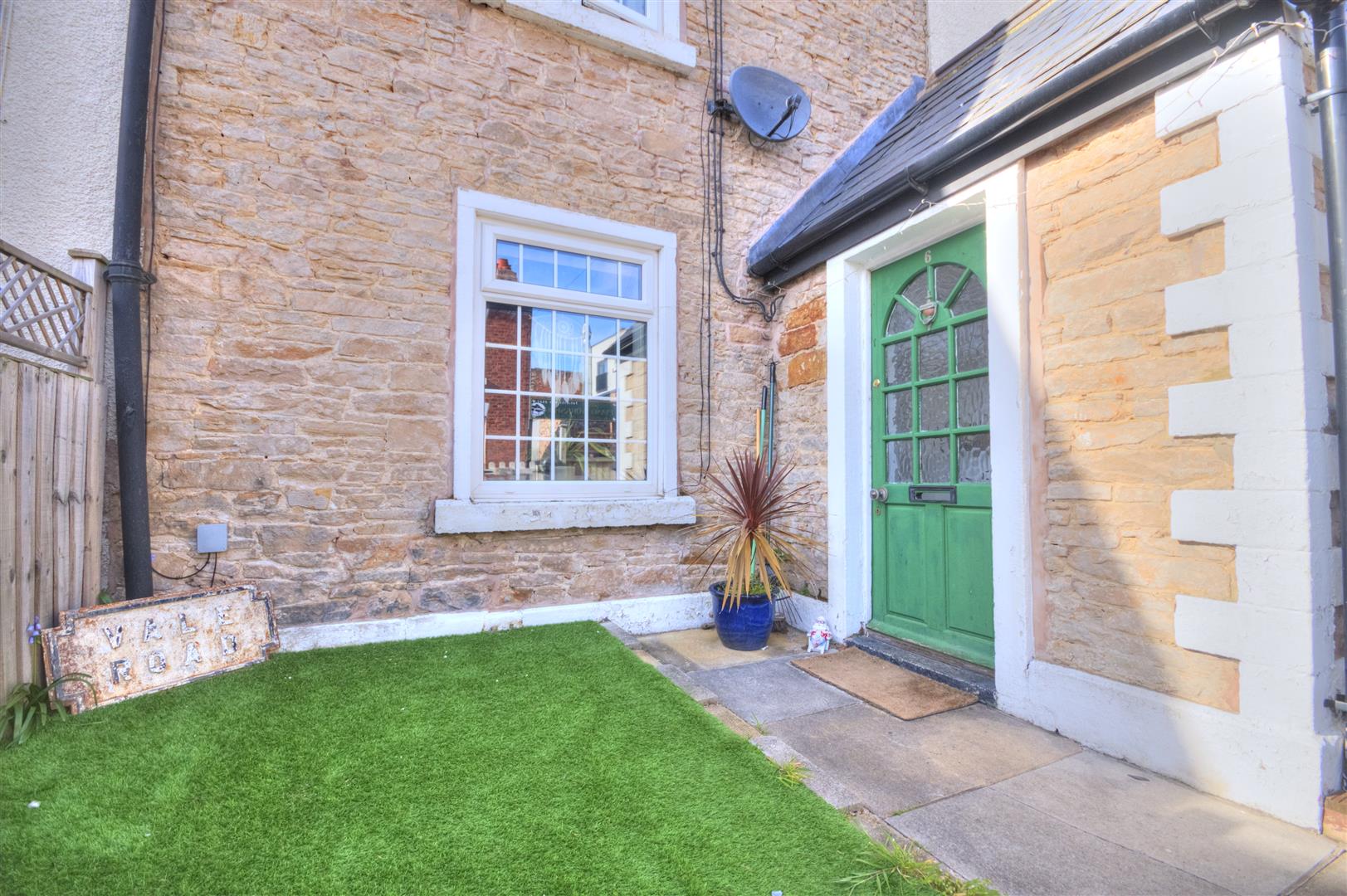 Externally, the property benefits from a **pleasant front garden incorporating a decked seating area and artificial lawn**, ideal for outdoor dining and relaxing. To the rear, there is a **low-maintenance enclosed courtyard/yard with useful rear access**.