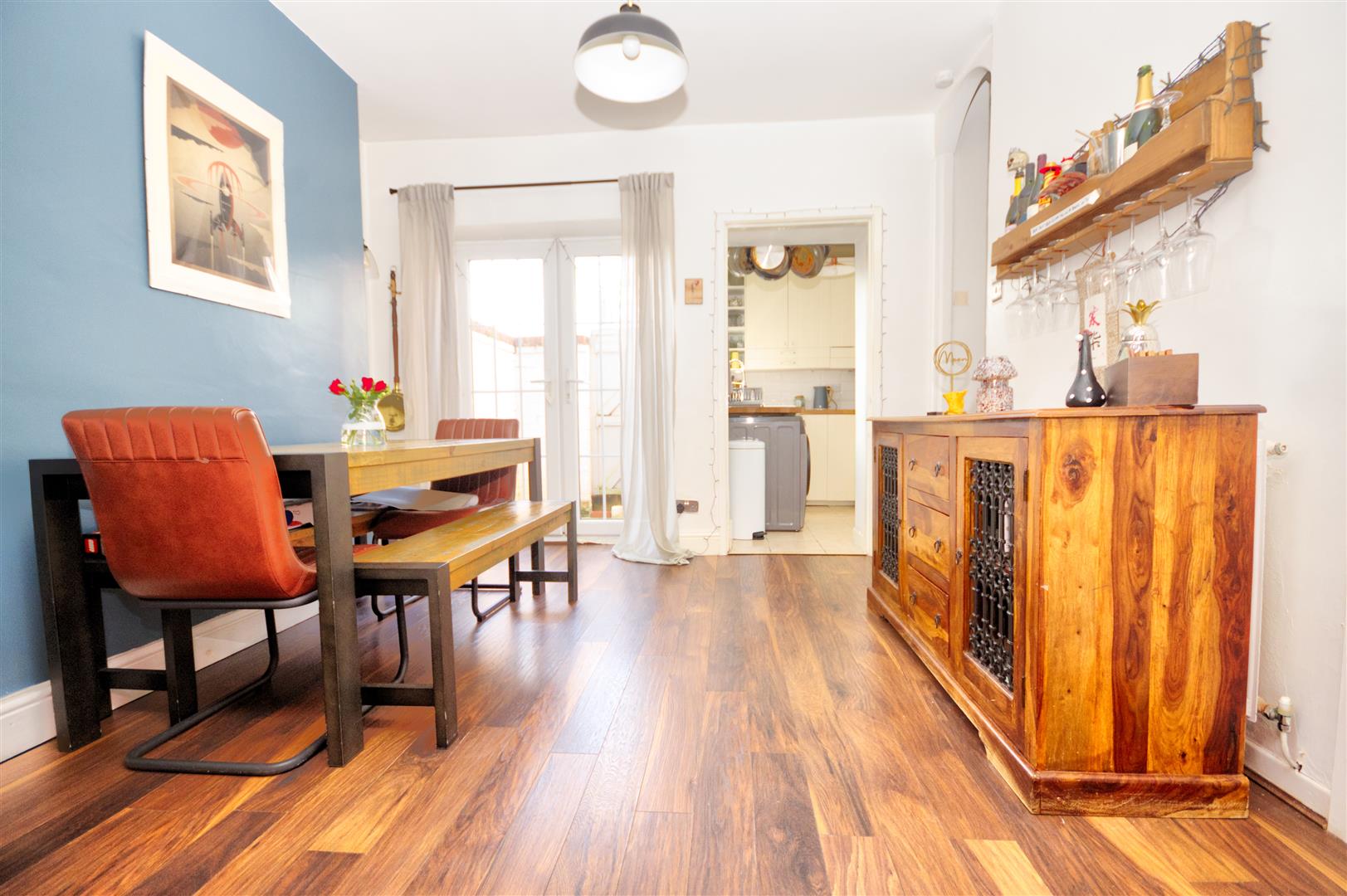 A generous and versatile dining area, perfectly positioned to the rear of the living room. Offering ample space for a family dining table and additional furniture, this room is ideal for entertaining guests or everyday family use. The staircase rises to the first floor, useful under stairs storage cupboard and there is direct access through to the kitchen, creating a practical and sociable layout.