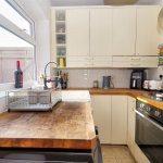 A well-appointed and stylish kitchen fitted with a range of modern wall and base units complemented by solid wood work surfaces. Incorporating an integrated oven and gas hob with extractor hood above, along with space for additional appliances. A window to the rear elevation provides natural light, while the layout maximises both storage and workspace, making it a highly functional area.